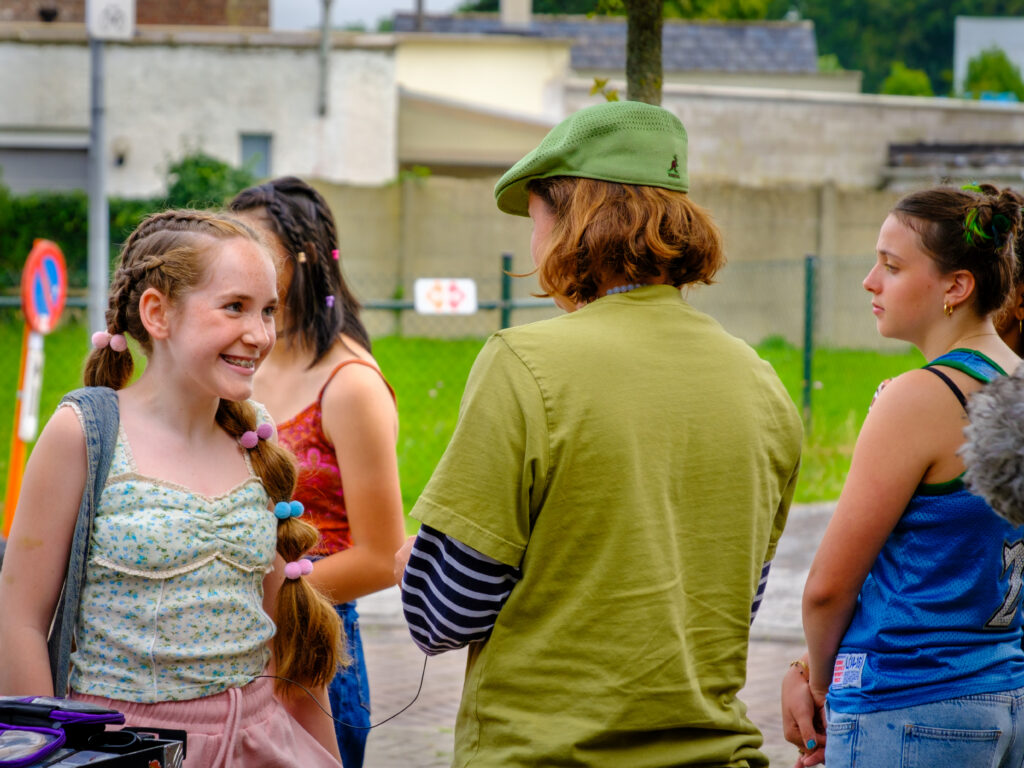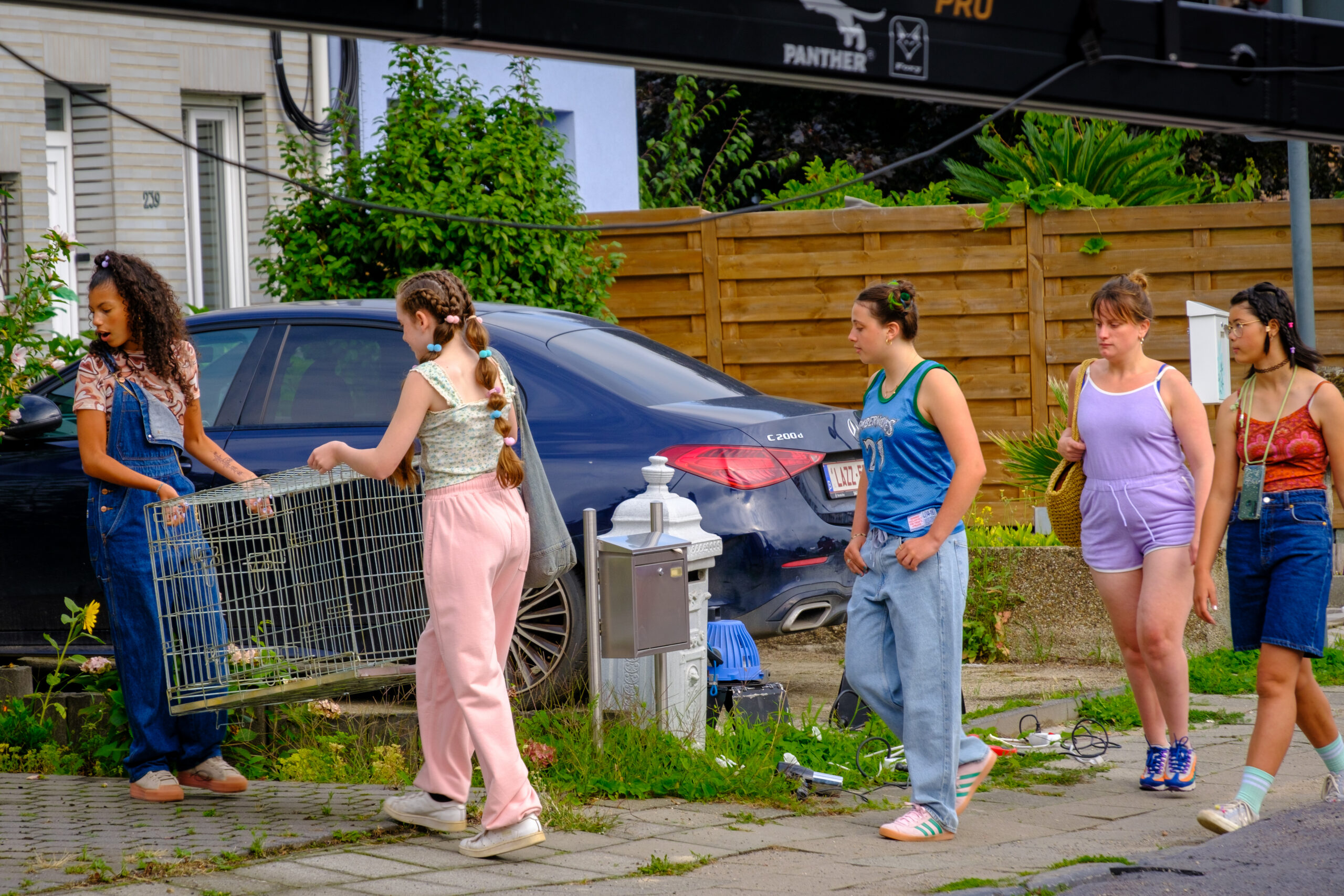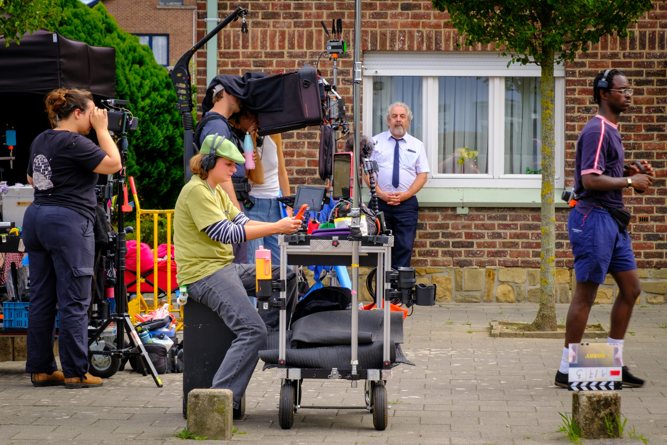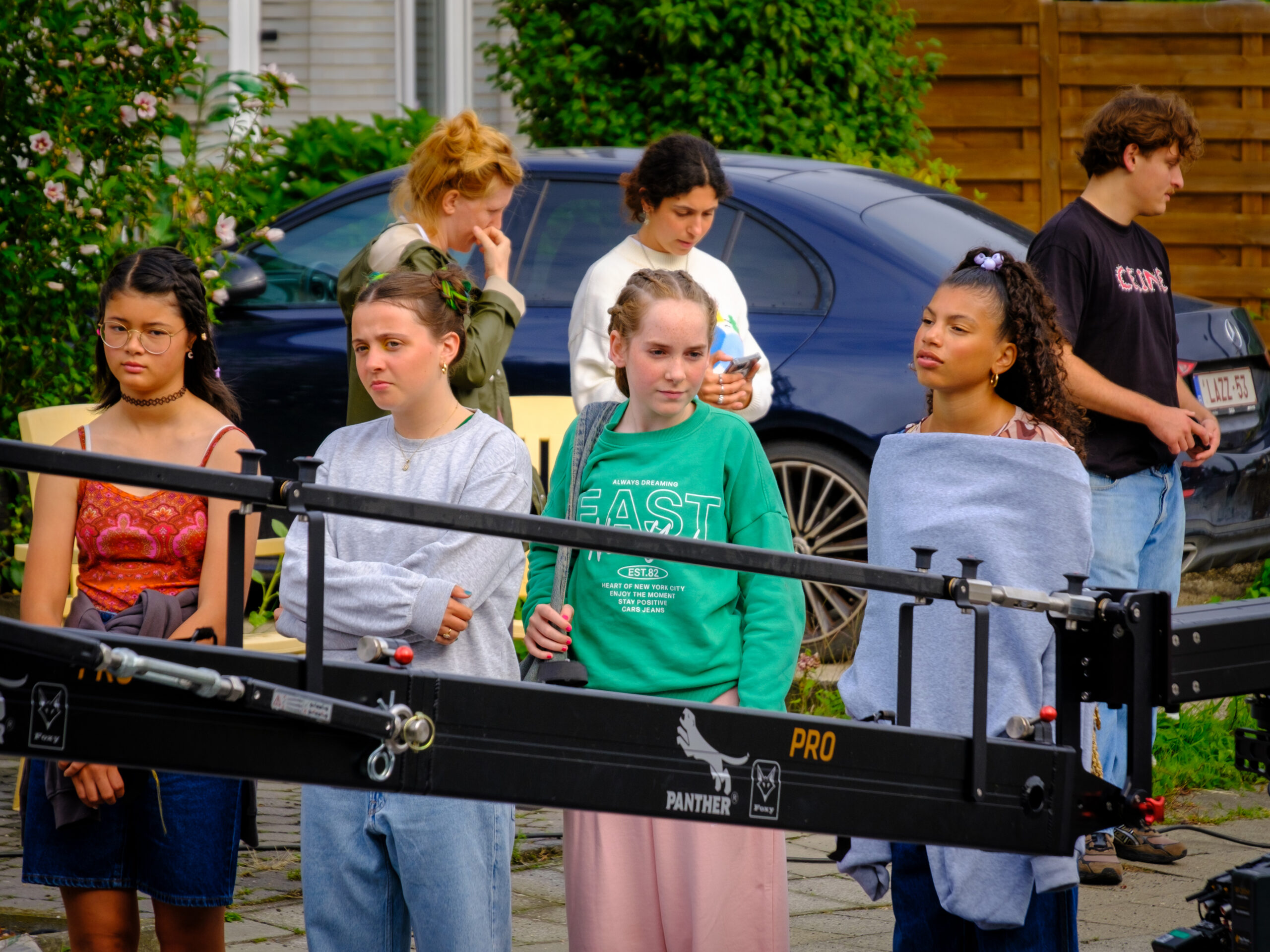 In augustus 2025 streek de filmploeg van Tegenwoordig heet iedereen Sorry neer in Vilvoorde voor opnames, en ik kreeg de kans om er een fotoreportage te maken midden op de set. In deze reeks neem ik je mee achter de schermen: de concentratie vlak voor “actie”, kleine stiltes tussen takes, en de details die je in de uiteindelijke film zelden ziet, maar die wél mee het verhaal dragen. Tegenwoordig heet iedereen Sorry is een coming-of-agefilm van Frederike Migom, gebaseerd op de gelijknamige jeugdroman van Bart Moeyaert—een verhaal over Bianca, die tijdens de zomer op zoek gaat naar haar plek.