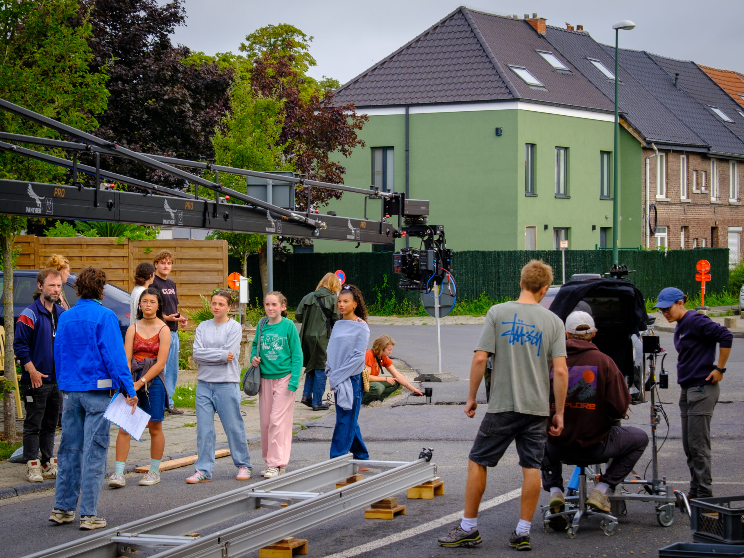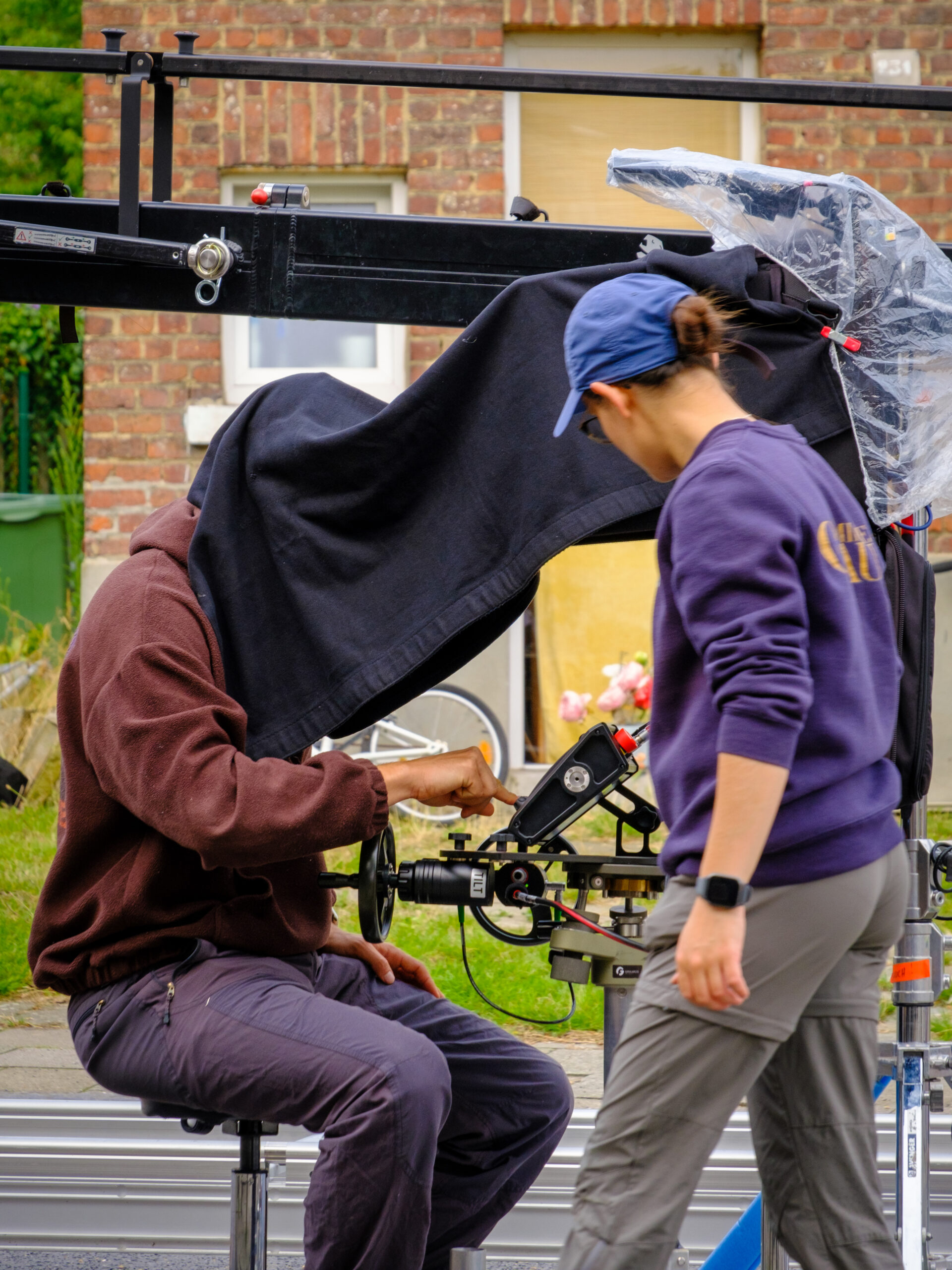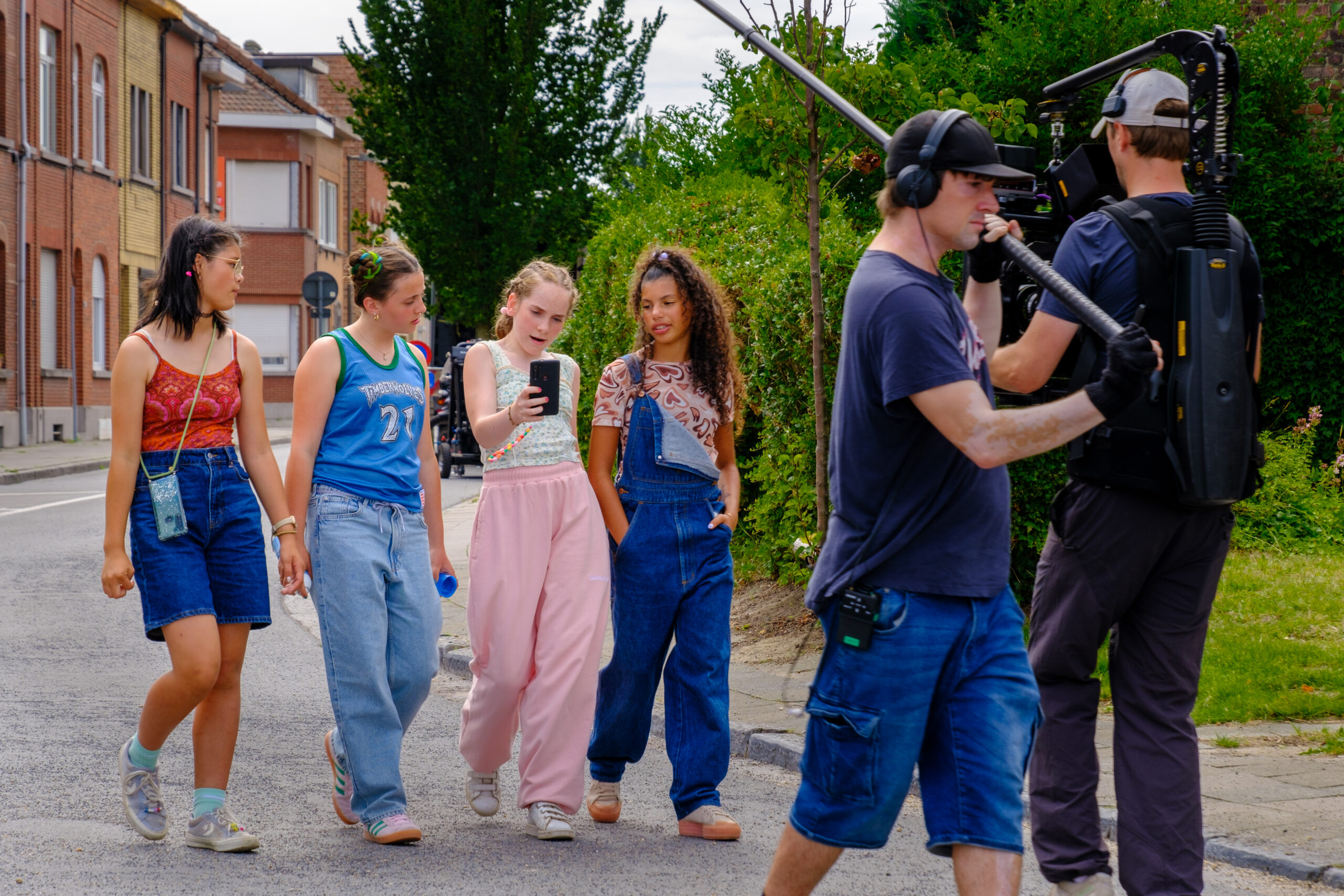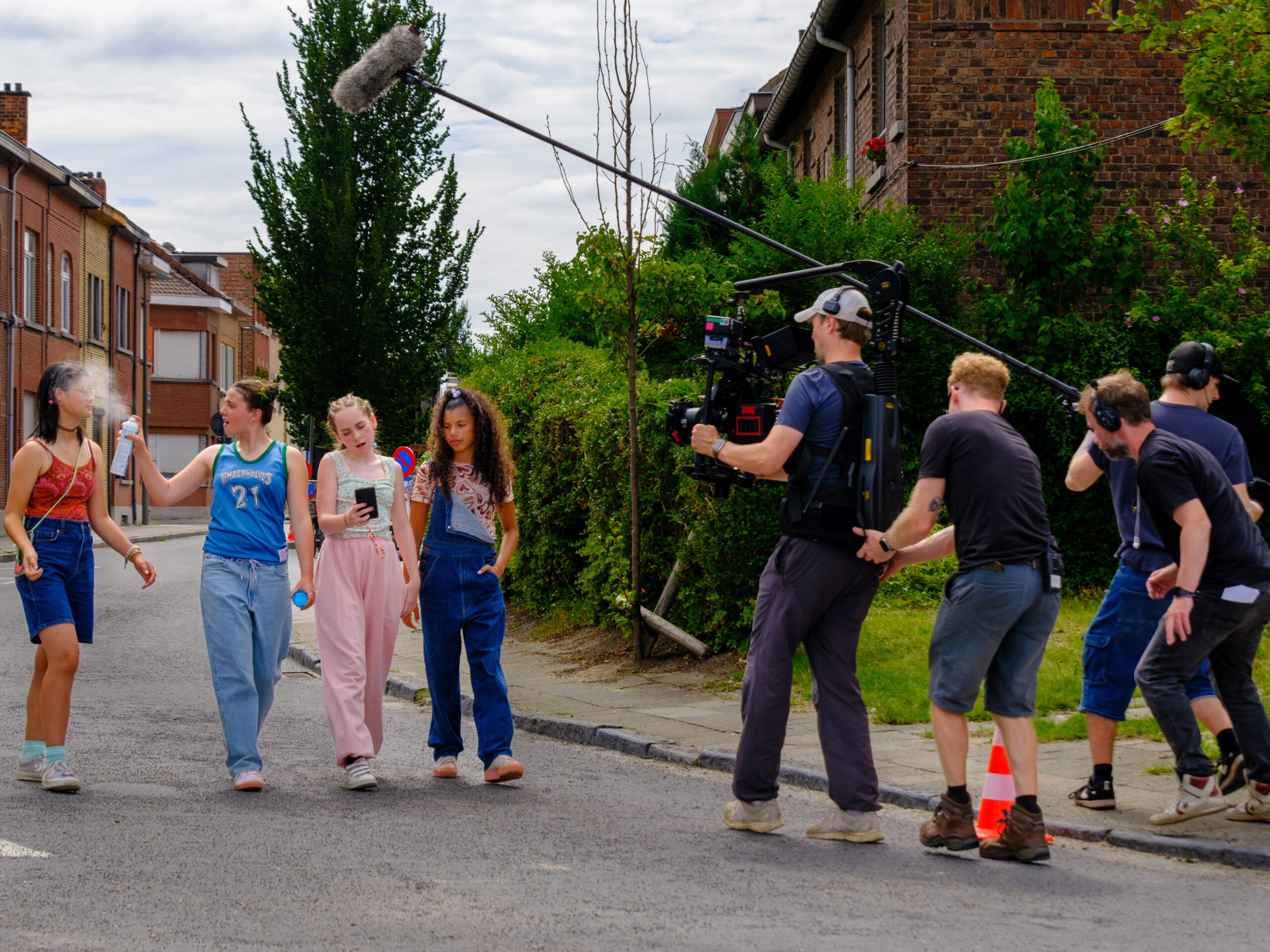 In augustus 2025 streek de filmploeg van Tegenwoordig heet iedereen Sorry neer in Vilvoorde voor opnames, en ik kreeg de kans om er een fotoreportage te maken midden op de set. In deze reeks neem ik je mee achter de schermen: de concentratie vlak voor “actie”, kleine stiltes tussen takes, en de details die je in de uiteindelijke film zelden ziet, maar die wél mee het verhaal dragen. Tegenwoordig heet iedereen Sorry is een coming-of-agefilm van Frederike Migom, gebaseerd op de gelijknamige jeugdroman van Bart Moeyaert—een verhaal over Bianca, die tijdens de zomer op zoek gaat naar haar plek.