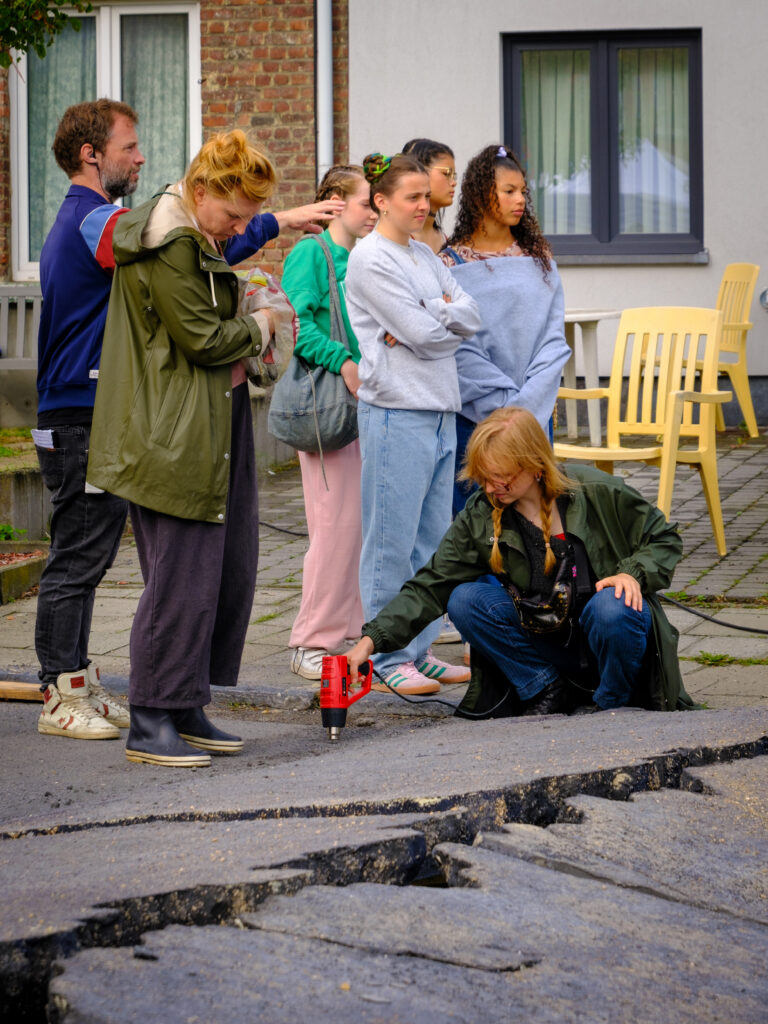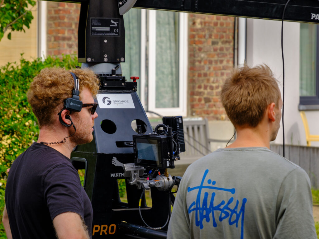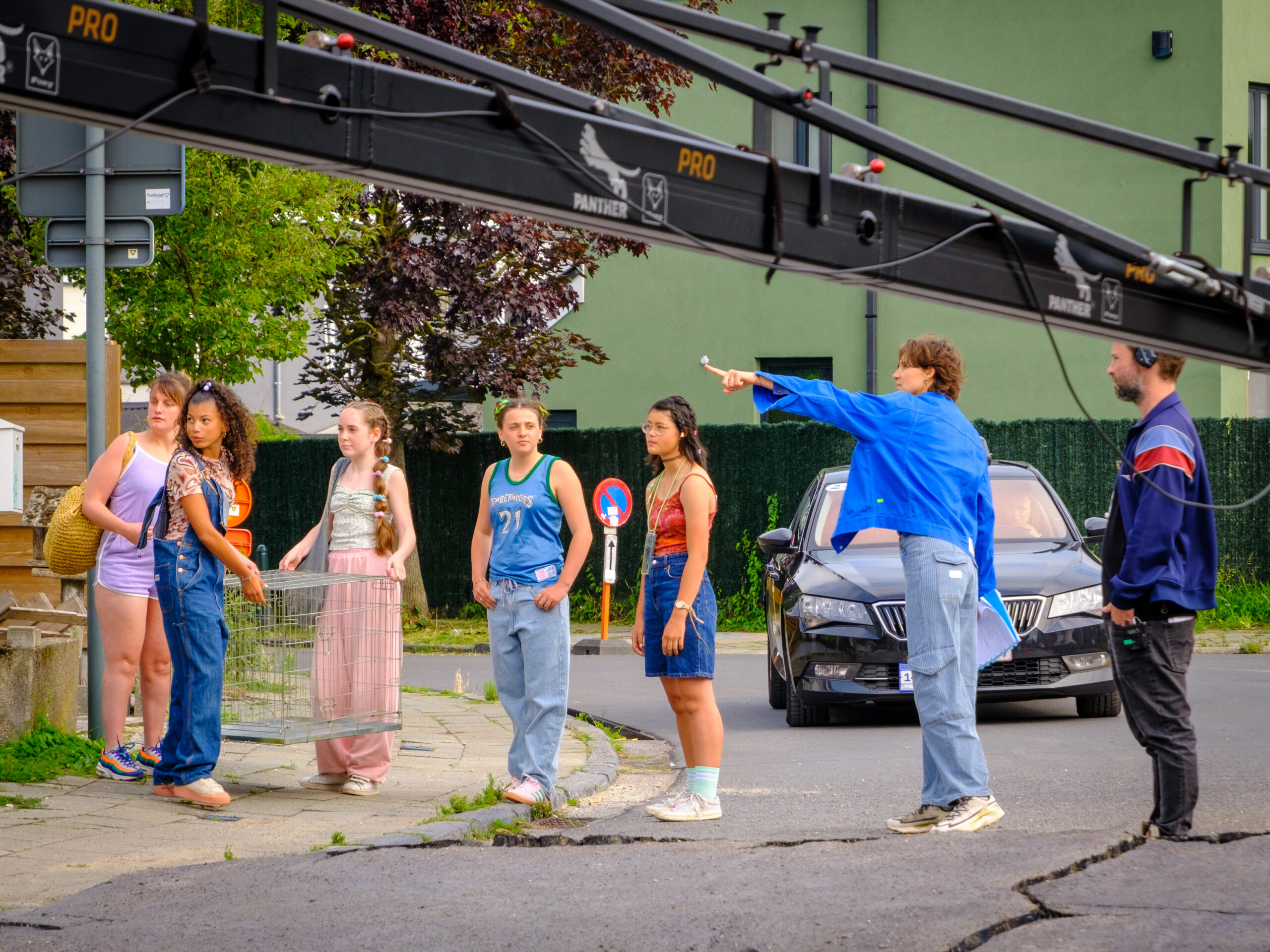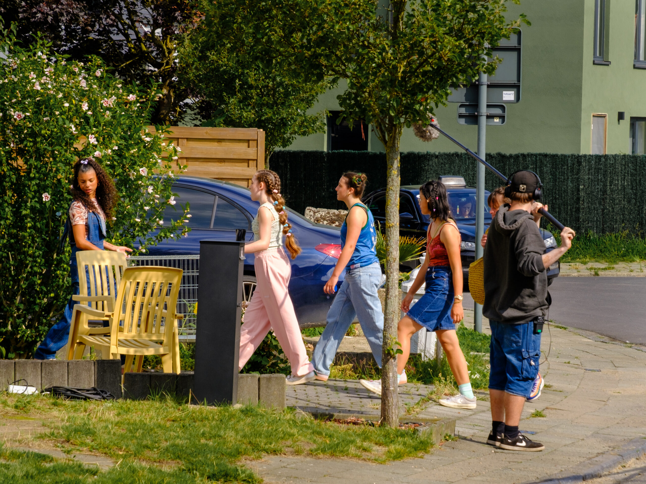 In augustus 2025 streek de filmploeg van Tegenwoordig heet iedereen Sorry neer in Vilvoorde voor opnames, en ik kreeg de kans om er een fotoreportage te maken midden op de set. In deze reeks neem ik je mee achter de schermen: de concentratie vlak voor “actie”, kleine stiltes tussen takes, en de details die je in de uiteindelijke film zelden ziet, maar die wél mee het verhaal dragen. Tegenwoordig heet iedereen Sorry is een coming-of-agefilm van Frederike Migom, gebaseerd op de gelijknamige jeugdroman van Bart Moeyaert—een verhaal over Bianca, die tijdens de zomer op zoek gaat naar haar plek.